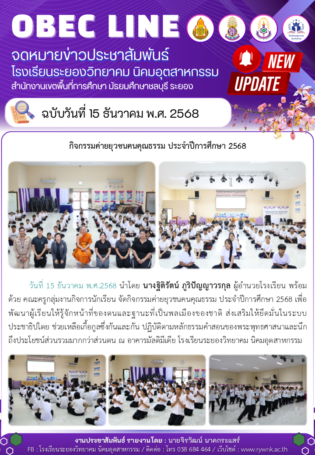 กิจกรรมค่ายยุวชนคนคุณธรรม ประจำปีการศึกษา 2568 16 ธ.ค. 256818 ธ.ค. 2025admin rywnkกิจกรรม, ข่าวประชาสัมพันธ์