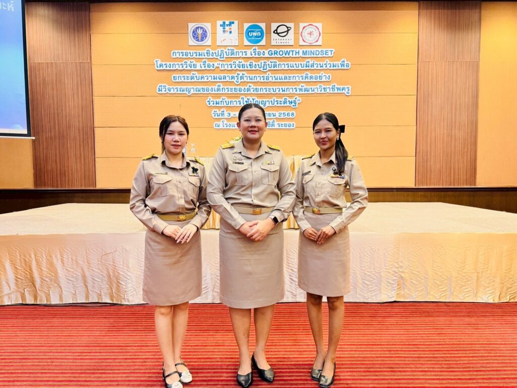 วันที่ 3 พฤศจิกายน พ.ศ.2568 นำโดย นางฐิติรัตน์ ภูริปัญญาวรกุล ผู้อำนวยการโรงเรียน มอบหมายให้ นางอังศุมา นิลวงค์ นางสาวกรกนก ไชยชนะ และนางสาวจิราภรณ์ ทรงประโคน ร่วมการอบรมเชิงปฏิบัติการ เรื่อง GROWTH MINDSET โครงการวิจัย เรื่อง การวิจัยเชิงปฏิบัติการแบบมีส่วนร่วมเพื่อยกระดับความฉลาดรู้ด้านการอ่านและการคิดอย่างมีวิจารณของเด็กระยองด้วยกระบวนการพัฒนาวิชาชีพครูร่วมกับการใช้ปัญญาประดิษฐ์ โดยมีการร่วมประชุมเพื่อทดสอบระบบ ตรวจสอบรายชื่อของนักเรียนแต่ละสถานศึกษา และทดสอบ Pretest ณ โรงแรมโกลเด้นซิตี้ อำเภอเมือง จังหวัดระยอง