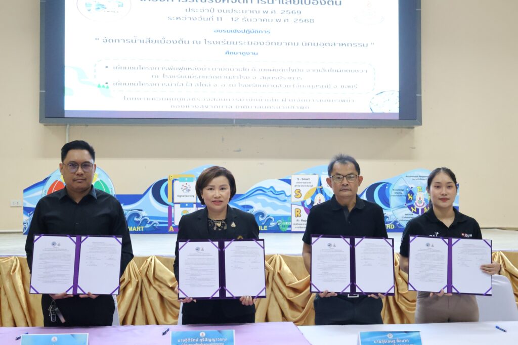 ระหว่างวันที่ 11-12 ธันวาคม พ.ศ.2568 นำโดย นางฐิติรัตน์ ภูริปัญญาวรกุล ผู้อำนวยโรงเรียน พร้อมด้วย คณะครู บุคลากรทางการศึกษา และนักเรียน เข้าร่วมโครงการรณรงค์จัดการน้ำเสียเบื้องต้น ประจำปีงบประมาณ พ.ศ.2569 โดยมี นายสุรเชษฐ ซื่อมาก รองนายกเทศมนตรี เป็นประธานกล่าวเปิดโครงการ และมีการร่วมลงนามบันทึกข้อตกลงความร่วมมือ (MOU) ในการจัดโครงการ ระหว่างเทศบาลนครมาบตาพุด โรงเรียนระยองวิทยาคม นิคมอุตสาหกรรม ซึ่งกิจกรรมในครั้งนี้มีวัตถุประสงค์เพื่อเสริมสร้างความรู้ความเข้าใจ ความหมายของน้ำเสียและแหล่งกำเนิดน้ำเสีย ส่งเสริมให้มีความรู้ความเข้าใจในการจัดการน้ำเสียเบื้องต้น และเพื่อกระตุ้นและสร้างจิตสำนึกให้กลุ่มเป้าหมายมีส่วนร่วมในการลดและขจัดมลพิษทางน้ำโดยบูรณาการดำเนินงานร่วมกันทุกภาคส่วน ณ โรงเรียนระยองวิทยาคม นิคมอุตสาหกรรม