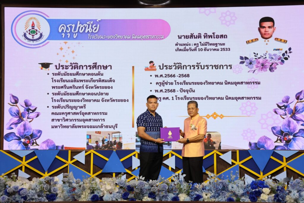 วันที่ 16 มกราคม พ.ศ.2569 นำโดย นางฐิติรัตน์ ภูริปัญญาวรกุล ผู้อำนวยการโรงเรียน พร้อมด้วย คณะครู บุคลากรทางการศึกษา ร่วมพิธีวันครู “คุรุปูชนีย์” ครั้งที่ 70 ประจำปี 2569 เพื่อระลึกถึงพระคุณบูรพาอาจารย์ ส่งเสริมยกย่องเชิดชูเกียรติผู้ประกอบวิชาชีพทางการศึกษา สร้างความสามัคคีในหมู่คณะ และให้เพื่อนครูได้มีโอกาสร่วมกันประกอบพิธีทางศาสนาและธำรงไว้ซึ่งขนบธรรมเนียมประเพณีอันดีงามของชาติ ณ หอประชุมบุญศิริบำเพ็ญ โรงเรียนระยองวิทยาคม อำเภอเมืองระยอง จังหวัดระยอง